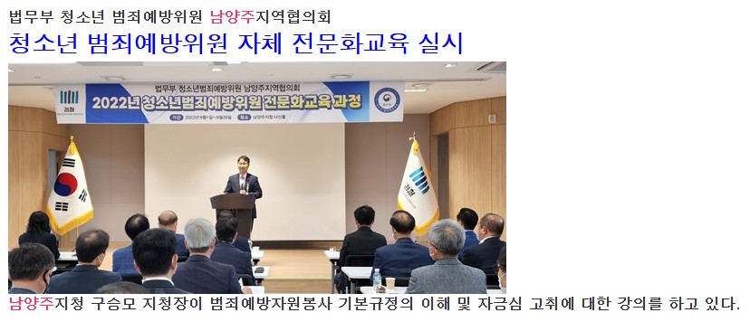 법무부 청소년 범죄예방위원 남양주지역협의회 ~ 청소년 범죄예방위원 자체 전문화교육 실시