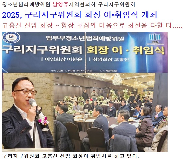 청소년범죄예방위원 남양주지역협의회 구리지구위원회 2025, 구리지구위원회 회장 이᛫취임식 개최