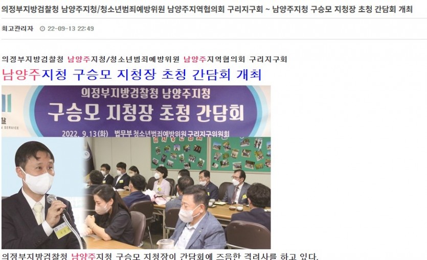 의정부지방검찰청 남양주지청/청소년범죄예방위원 남양주지역협의회 구리지구회 ~ 남양주지청 구승모 지청장 초청 간담회 개최
