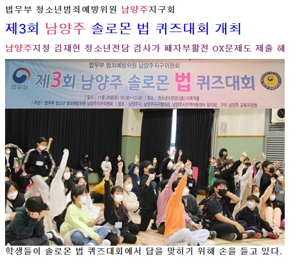법무부 청소년범죄예방위원 남양주지구회 제3회 남양주 솔로몬 법 퀴즈대회 개최